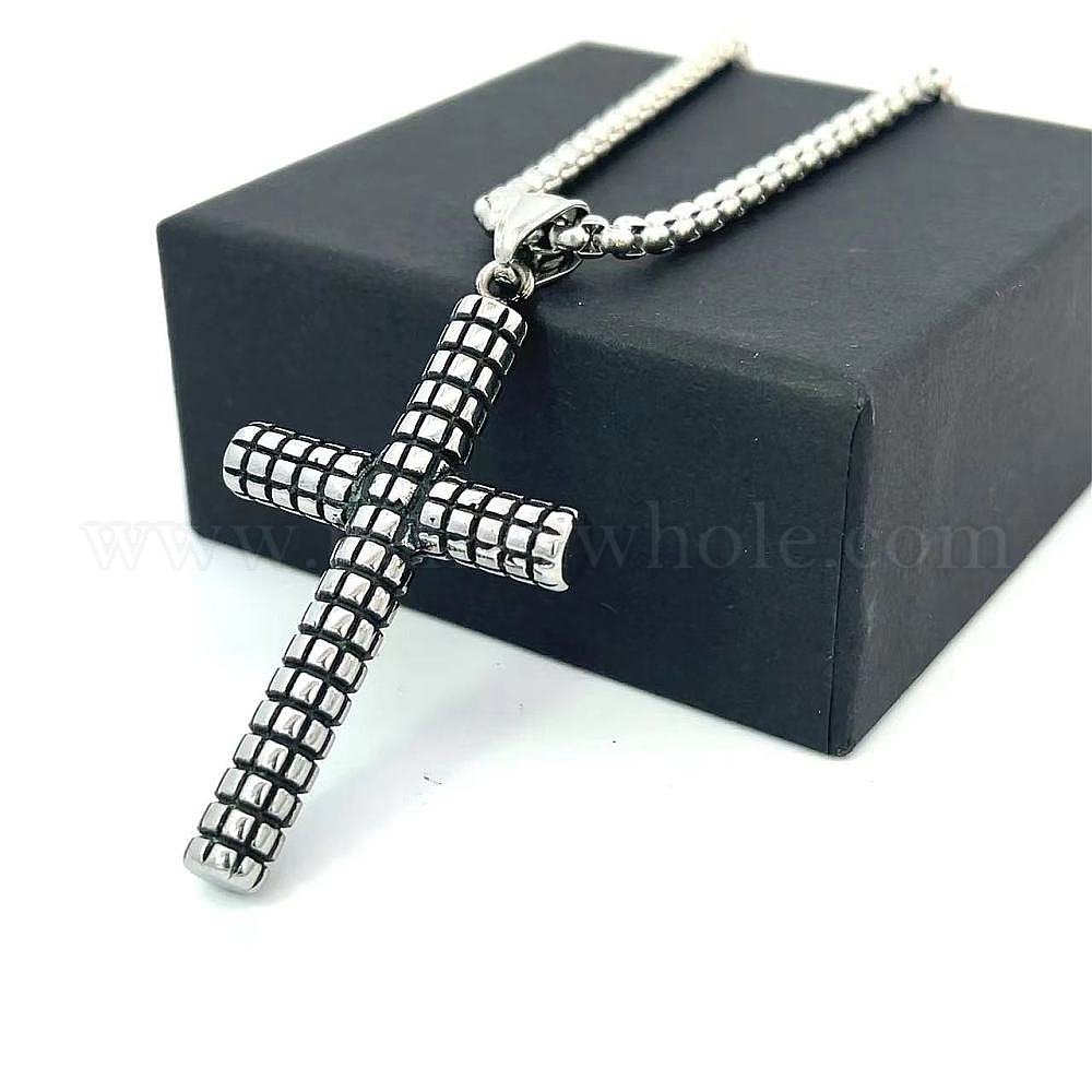 Мужские 304 подвеска в виде клетчатого креста из нержавеющей стали, винтажные панк-ожерелья