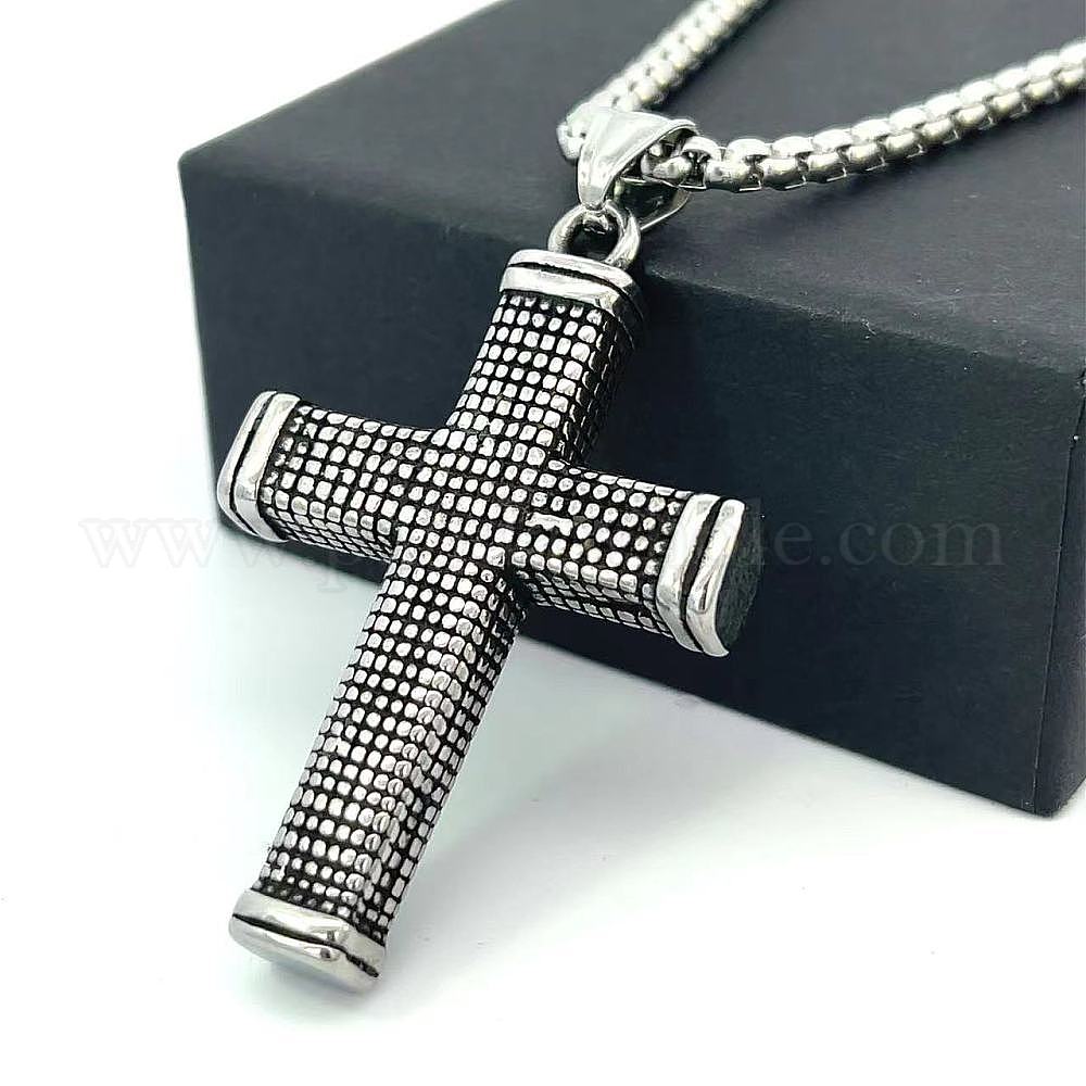 • Нержавеющая Сталь Цвет 304 Винтажные подвески-кресты из нержавеющей стали для мужчин, цвет нержавеющей стали, 23.62 дюйм (60 см)