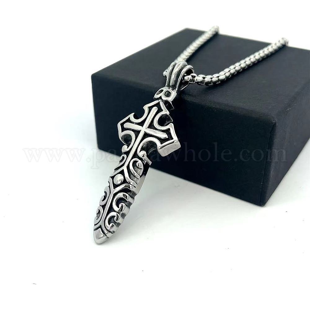 • Нержавеющая Сталь Цвет Винтажные 304 подвески в виде креста и короткого меча из нержавеющей стали для мужчин, цвет нержавеющей стали, 23.62 дюйм (60 см)