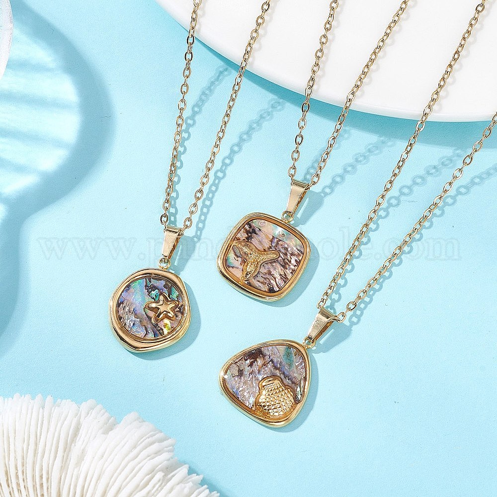 3шт. 3 стили летний пляжный кулон из натуральной раковины пауа 304 цепочки из нержавеющей стали для женщин, разнообразные
