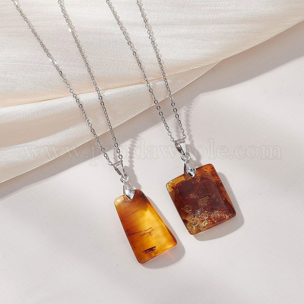 • Нержавеющая Сталь Цвет Прямоугольный кулон из натурального янтаря 304 Цепочка-подвеска из нержавеющей стали, цвет нержавеющей стали, 15.71~15.83 дюйм (39.9~40.2 см)