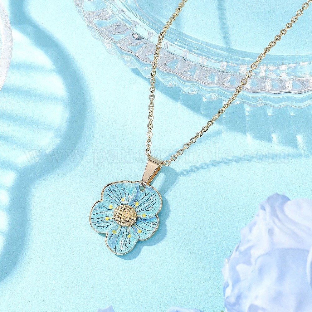 Небесно-голубой цветок 304 подвеска из нержавеющей стали с эмалью, цепочка-косуха для женщин (03ATCK)
