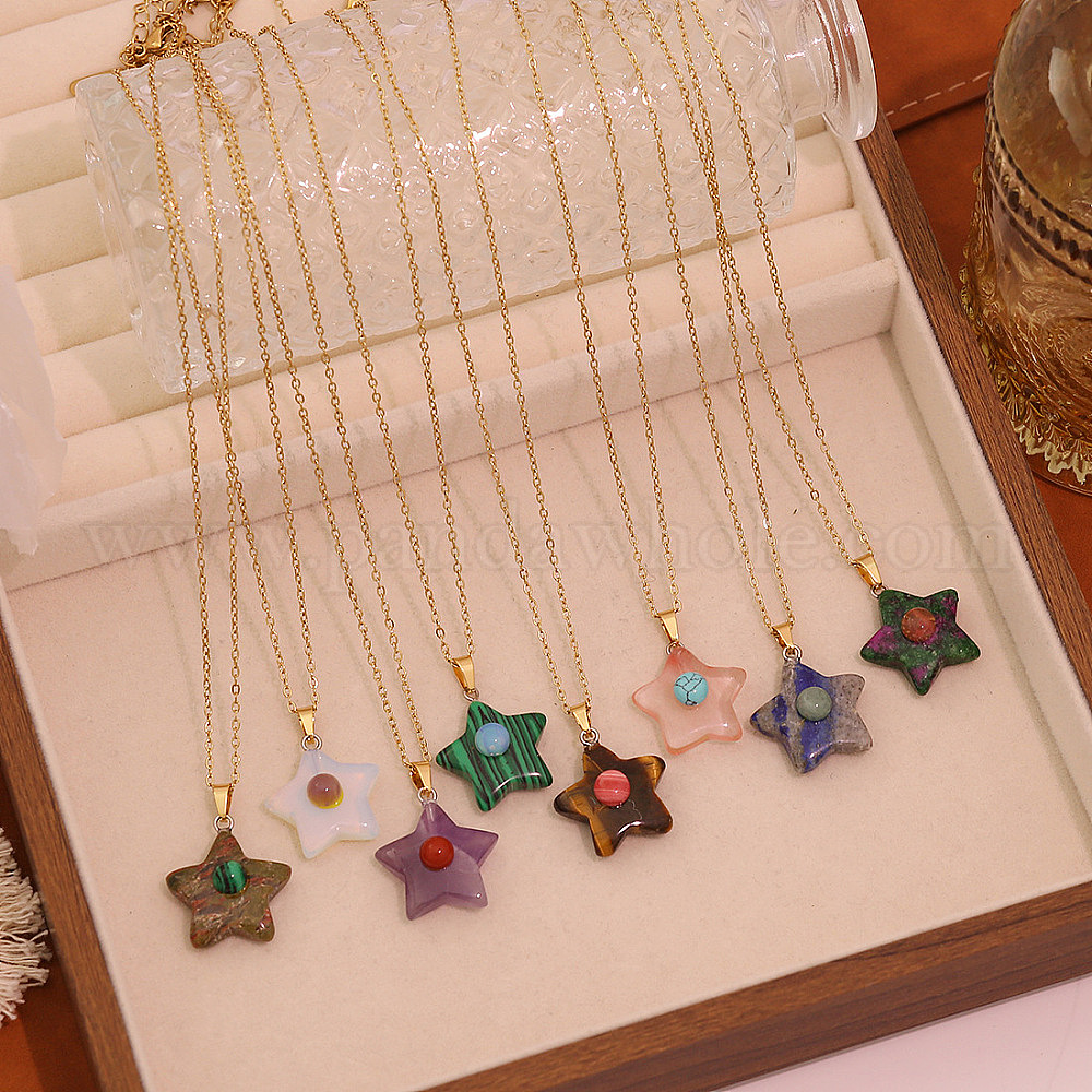 Натуральный и синтетический ожерелье из драгоценных камней, звезда, золотые