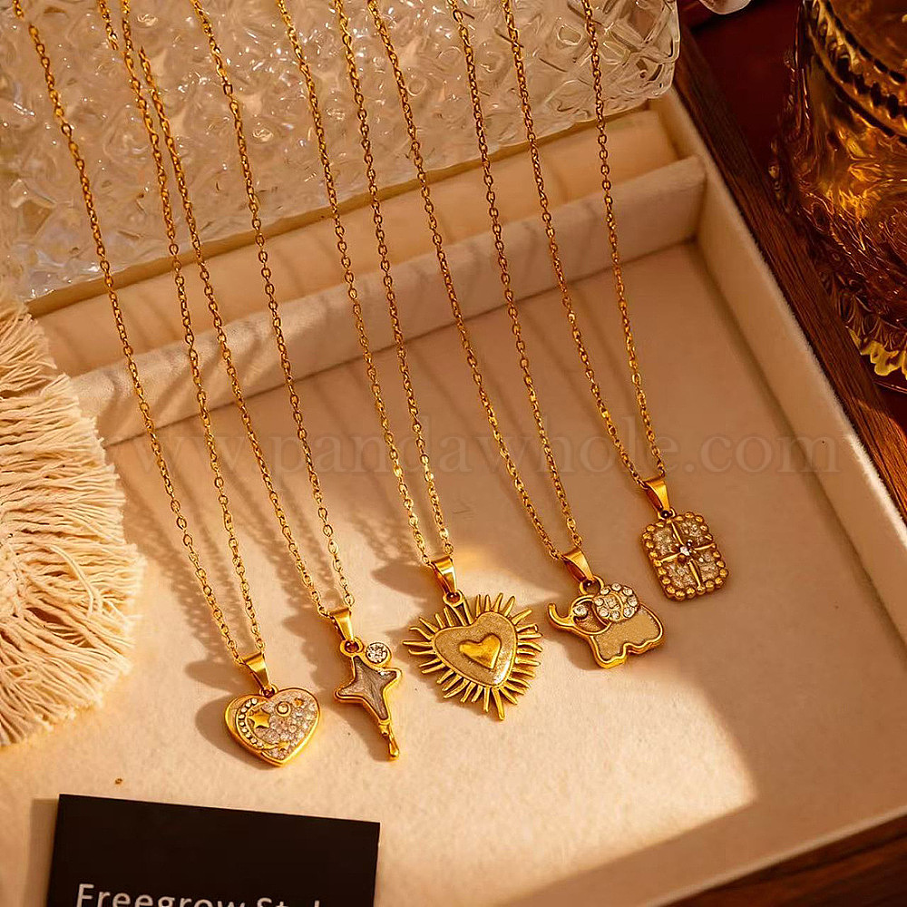304 из нержавеющей стали кулон ожерелья эмали, с кристально горный хрусталь, золотые