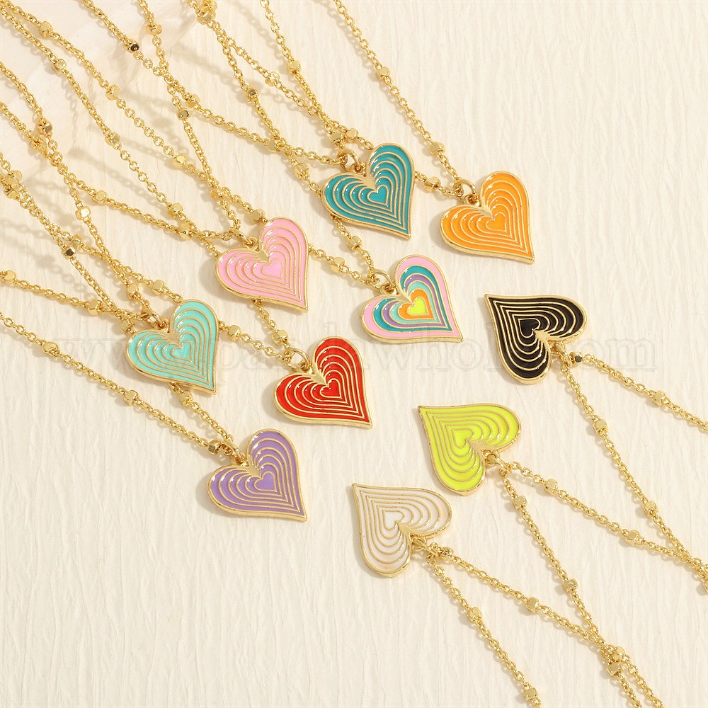 Женские латунные эмалированные ожерелья, сердце кулон ожерелье, золотые