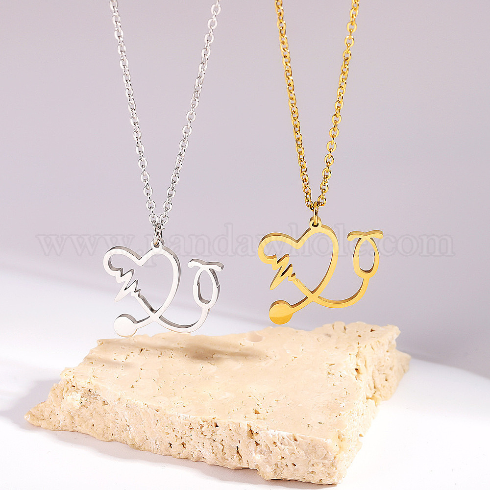 • Нержавеющая Сталь Цвет 304 Подвеска-стетоскоп в форме сердца из нержавеющей стали для женщин, не тускнеет, цвет нержавеющей стали, 17.44 дюйм (44.3 см)