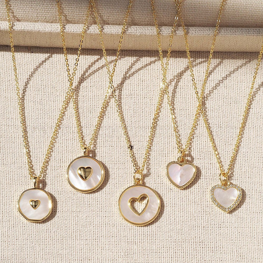 • Сердце Кулон из натуральной раковины, латунная цепочка., регулируемые слайдерные ожерелья для женщин, золотые, цвет морской раковины, сердце, 17.72 дюйм (45 см), Кулон : 12.3x13.4 мм