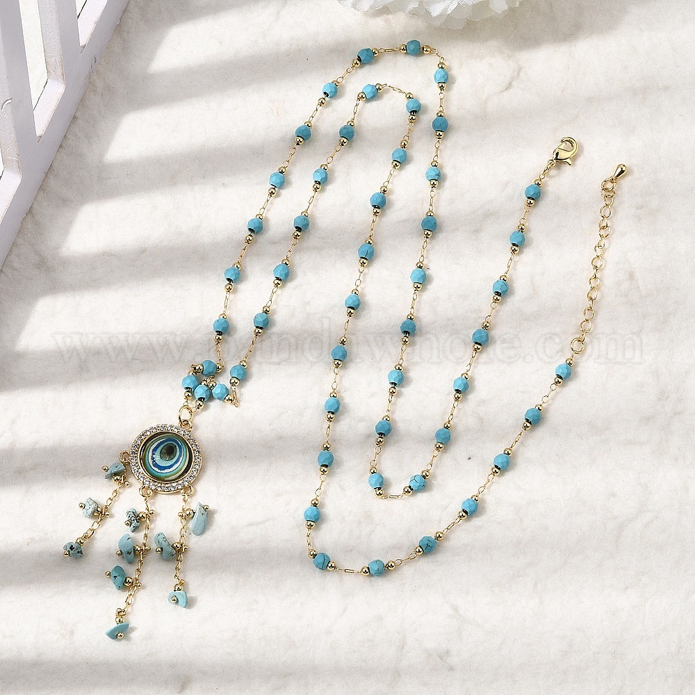 Подвеска в стиле бохо из латуни и смолы с синим оберегом от сглаза и кисточкой из окрашенной натуральной крошки говлита., стойки покрытие, долговечный, без кадмия и без свинца, бирюзовые