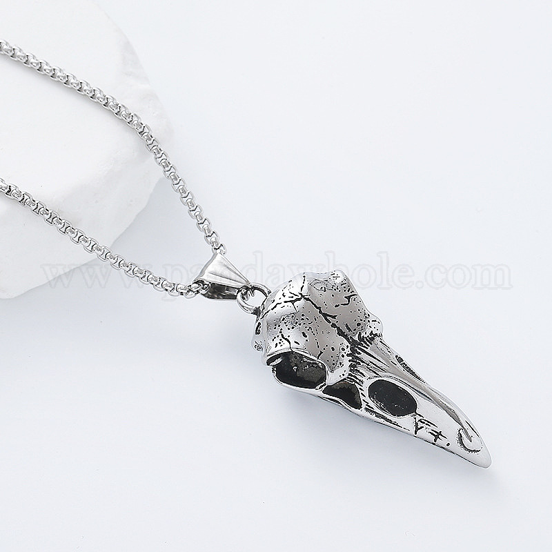 Винтажный готический череп ворона 304 подвеска из нержавеющей стали для мужчин и женщин