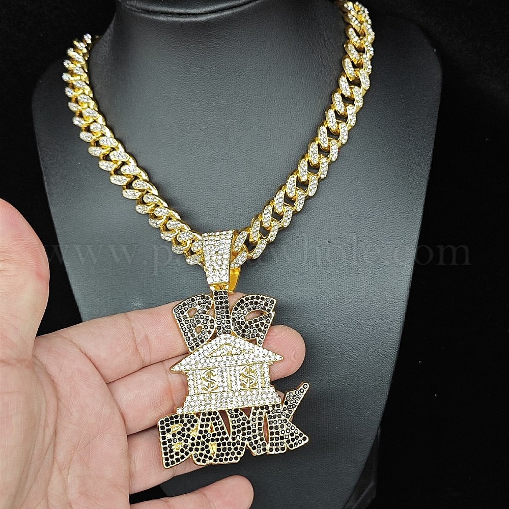 Подвеска в стиле хип-хоп из цинкового сплава, полностью украшенная кристаллами и черными стразами, большая цепочка в кубинском стиле Bank House для мужчин.