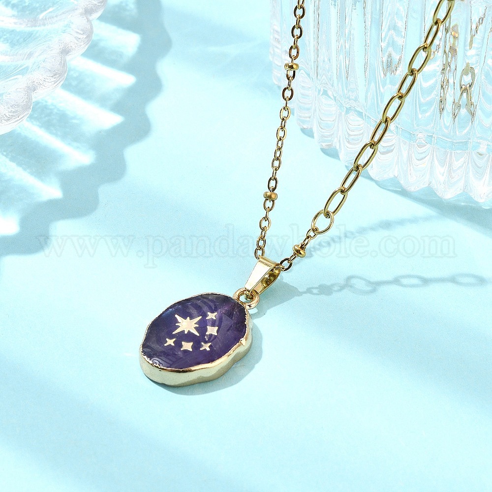 Овальный кулон из натурального аметиста из латуни 304 цепочка из нержавеющей стали для женщин