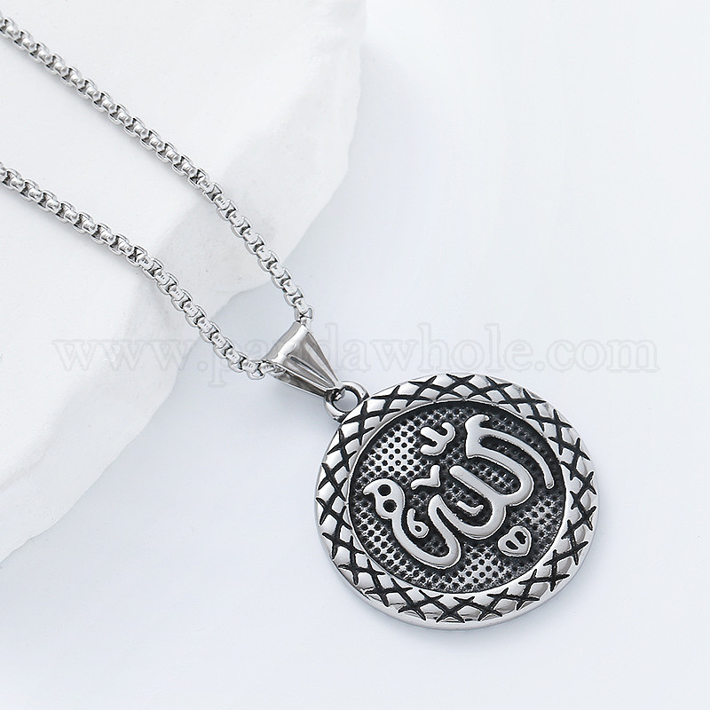 Винтажный ретро 304 плоская круглая подвеска Аллаха из нержавеющей стали, мусульманские религиозные украшения