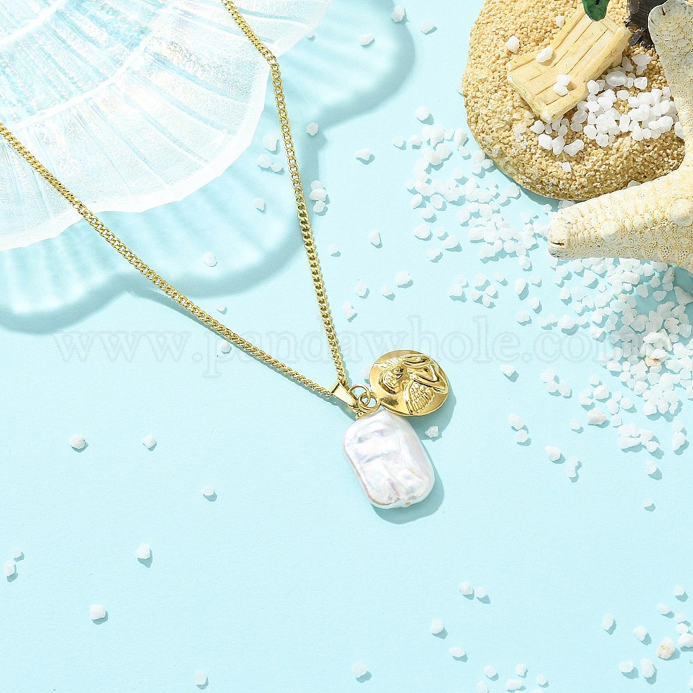 • Золотой Прямоугольная цепочка с подвеской в виде монеты-ангела из нержавеющей стали в стиле барокко для женщин, белые, золотые, 304 дюйм (17.72 см)