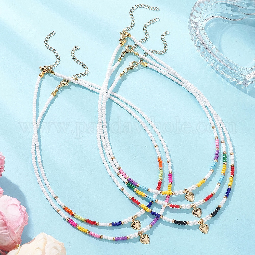 День святого Валентина 304 Подвеска в форме сердца из нержавеющей стали, ожерелье из бисера со стеклянными бусинами для женщин, золотые