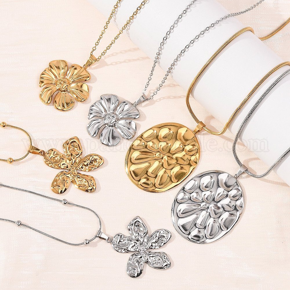 • Золотой 304 Кулоны-подвески в виде цветка из нержавеющей стали для женщин, золотые, 17.83 дюйм (45.3 см)