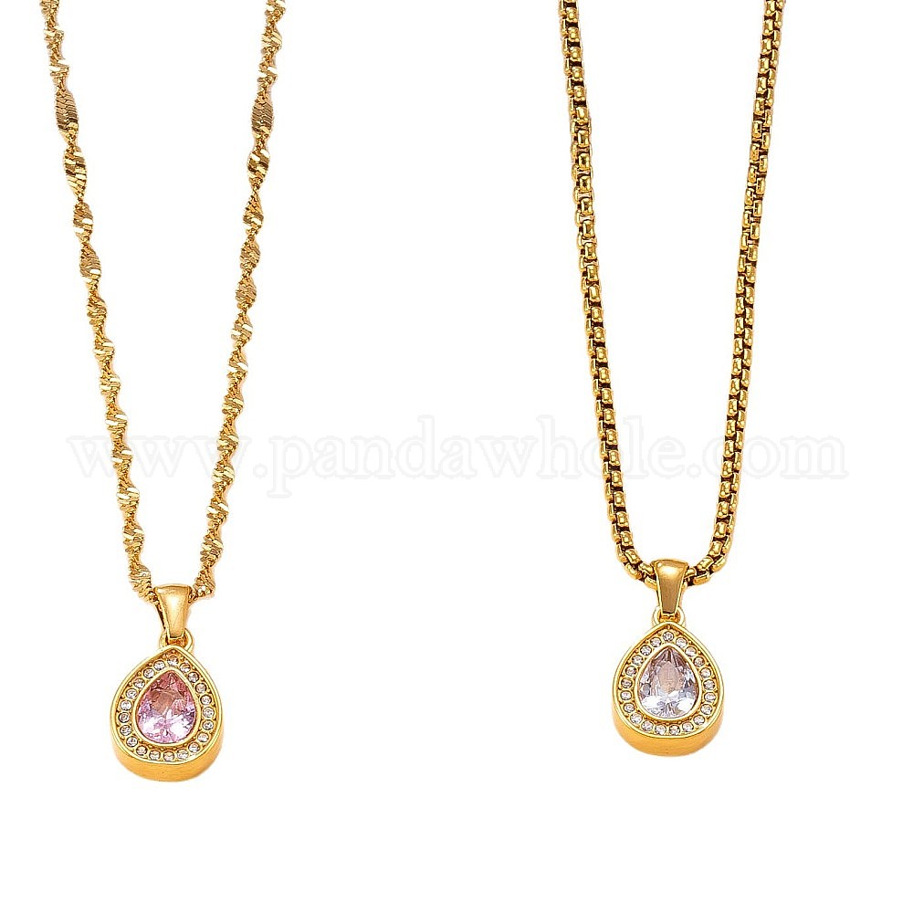 304 Подвески-капли из нержавеющей стали со стразами для женщин, реальный 18 k позолоченный