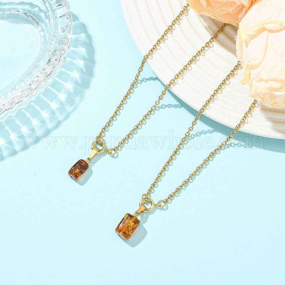 Кулон из натурального янтаря в форме куба 304 Цепочки из нержавеющей стали с пружинными застежками
