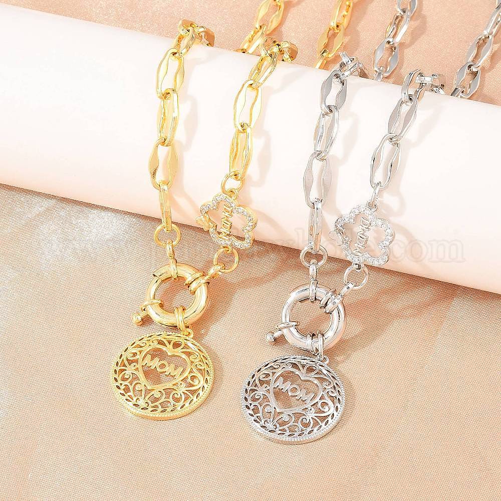 • Платина Подвеска-колье ко Дню матери из латуни с микропаве из прозрачного кубического циркония, полая, плоская, круглая, с сердечком., без кадмия и без свинца, долговечный, стойки покрытие, платина, 16.65 дюйм (42.3 см)