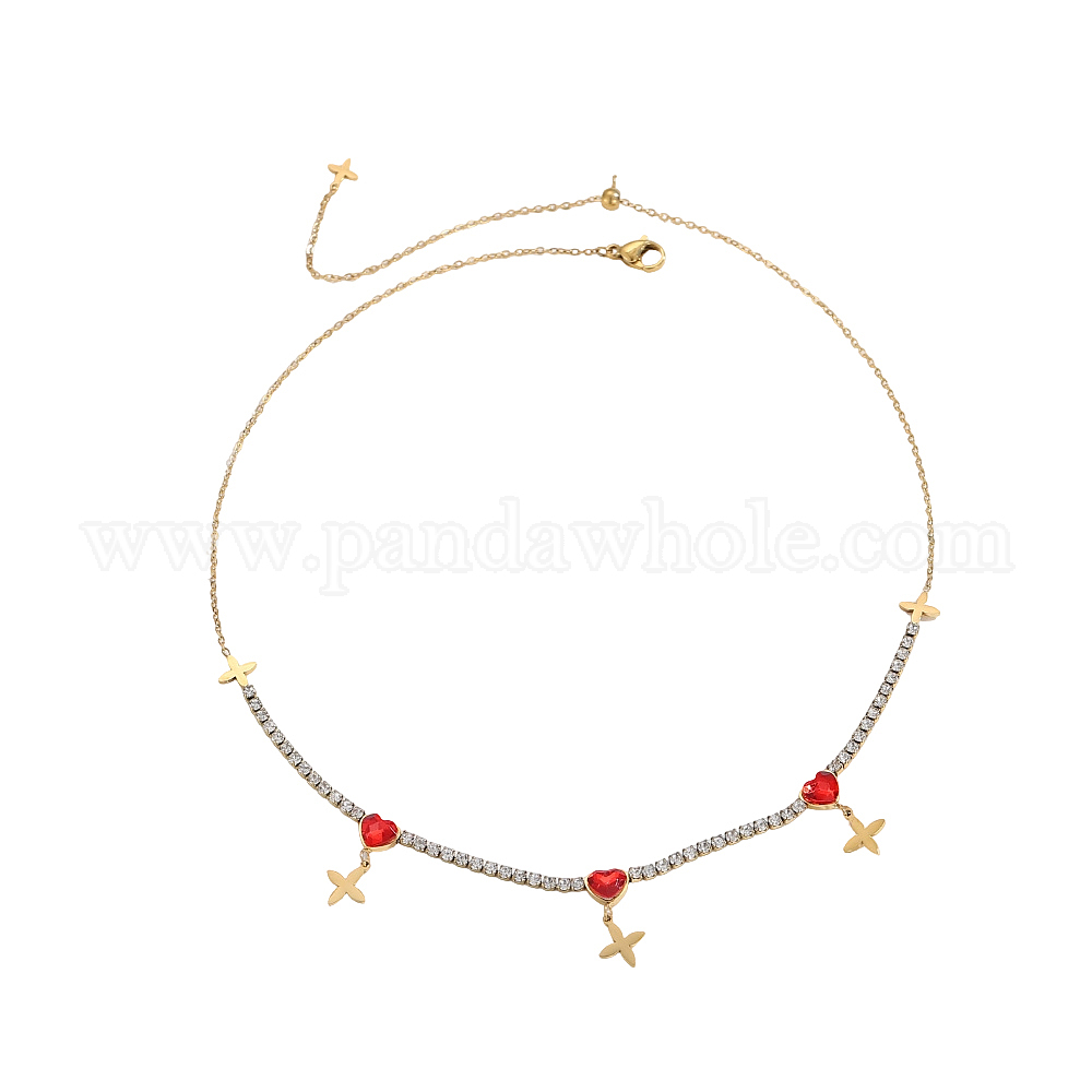 304 нержавеющая сталь с микропроводом кубические циркониевые подвесные ожерелья, браслеты-цепочки для женщин, сердце и крест, реальный 18 k позолоченный (03BFK6)