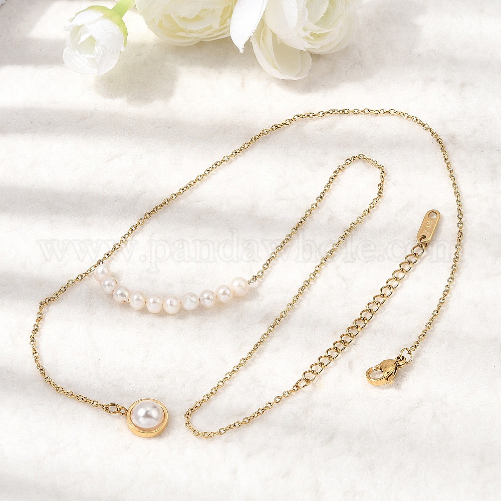 • Настоящее золото 18K Подвеска из натурального жемчуга в виде картофеля 304 Цепочка из нержавеющей стали с кисточкой из искусственного жемчуга, белые, реальный 18 k позолоченный, 17.13 дюйм (43.5 см)
