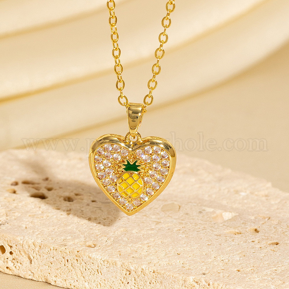 Подвеска в виде сердца из латуни с микропаве из кубического циркония и эмалью, для женщин.
