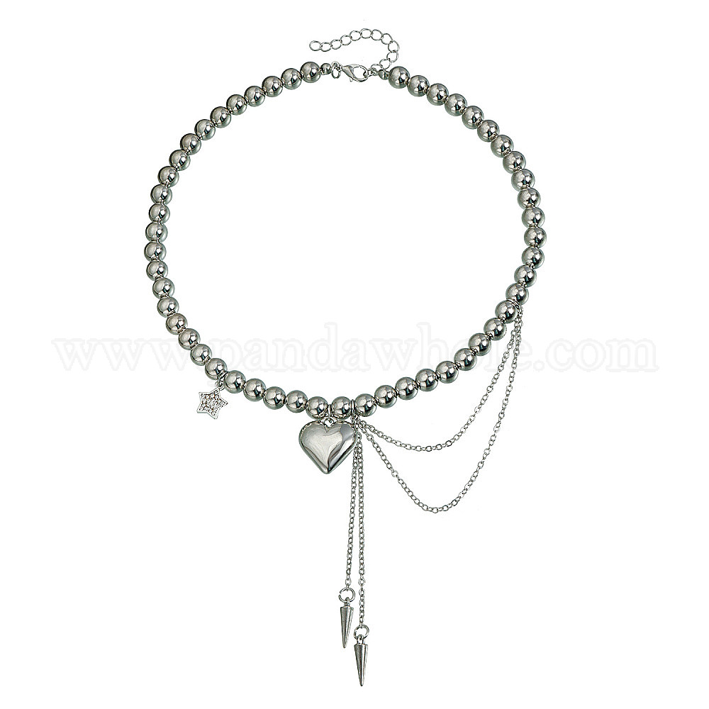 Подвеска в виде звезды и сердца из сплава с кристаллами и стразами, пластиковые круглые бусы для женщин.