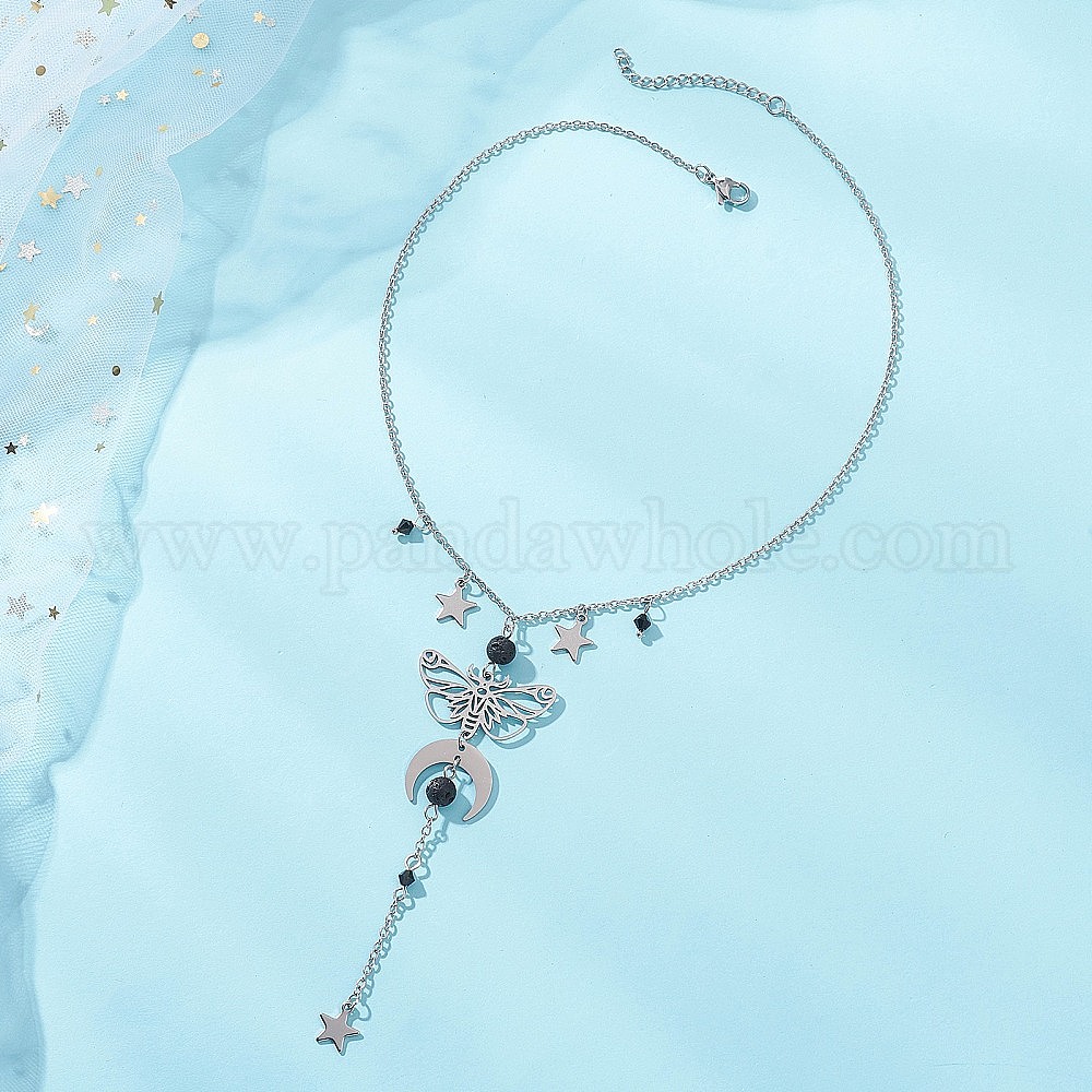 201 и 304 подвеска из нержавеющей стали в виде луны, звезды и бабочки, цепочка на шнурке, Круглые ожерелья из натуральной лавовой породы с длинными кисточками для женщин.