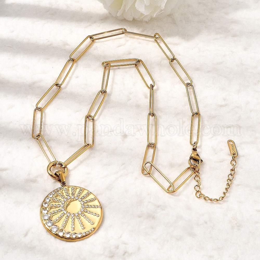 304 Подвеска в виде солнца из нержавеющей стали с кристаллами и стразами, цепочка-скрепка для женщин