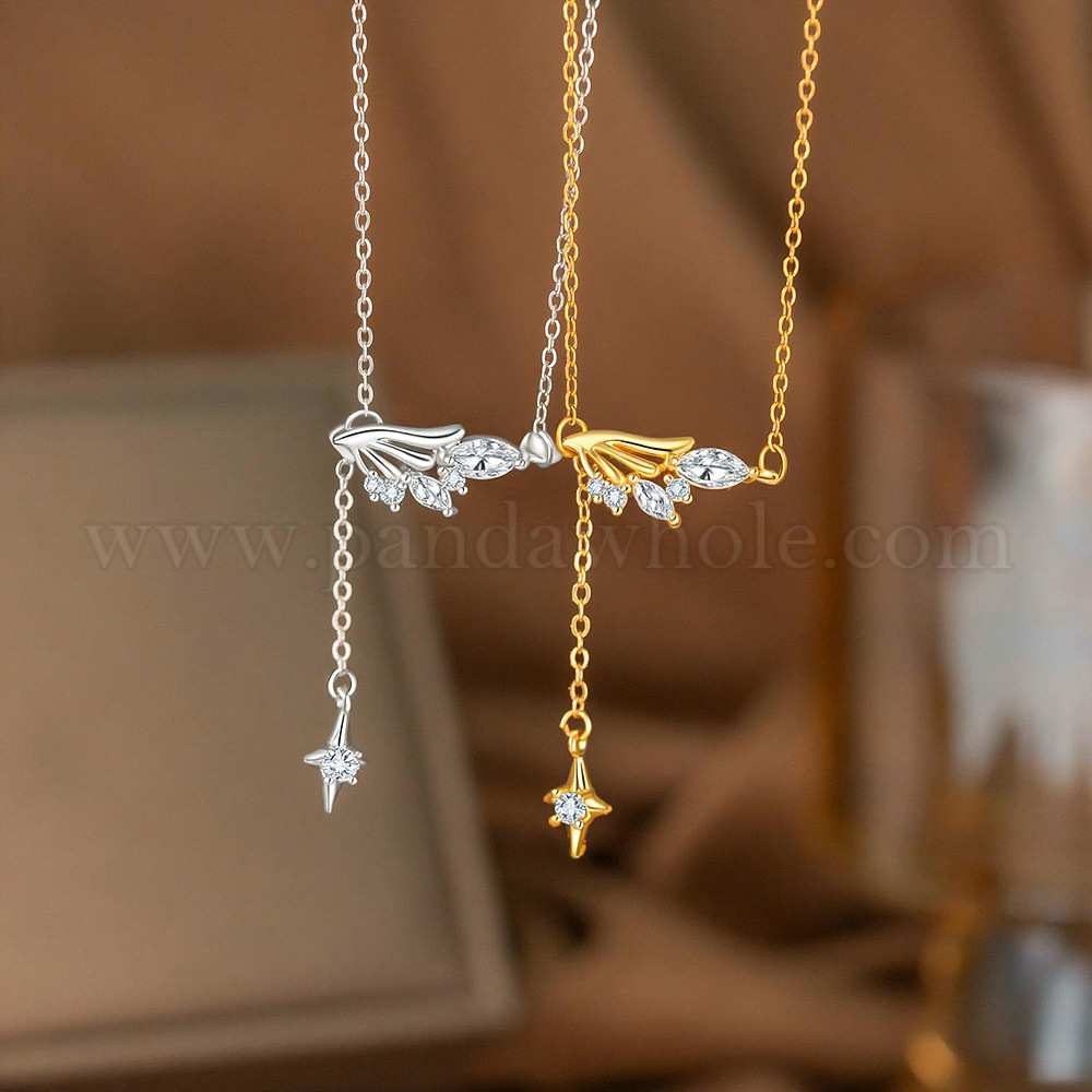 Подвеска в виде крыла из прозрачного кубического циркония с инкрустацией в виде звезды 304 цепочка из нержавеющей стали для женщин