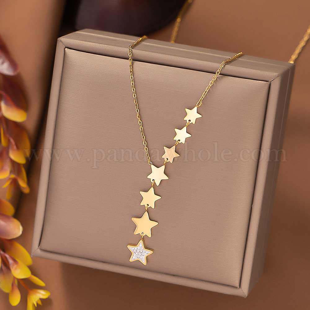 • Золотой 304 Подвеска в виде звезды из нержавеющей стали с кристаллами и стразами, цепочка-колье для женщин, золотые, 16.54 дюйм (42 см)
