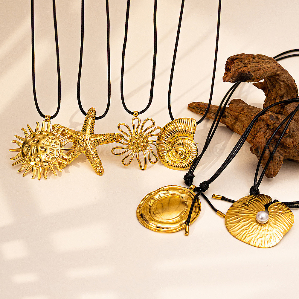 Летние 304 подвеска из нержавеющей стали, регулируемый черный вощеный шнурок, ожерелье для женщин, золотые (03BQRF)