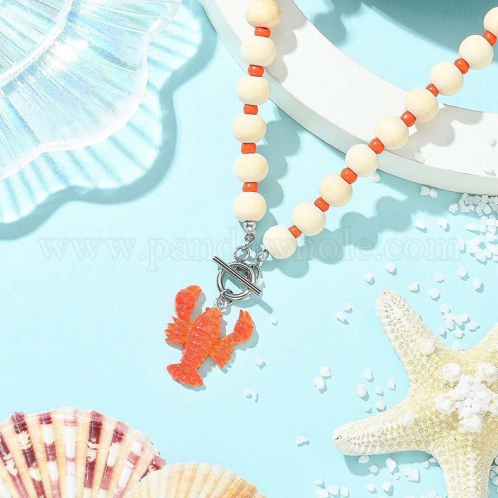 Летние пляжные подвески в виде лобстера из смолы, деревянные бусы с застежками для женщин, кораллового цвета