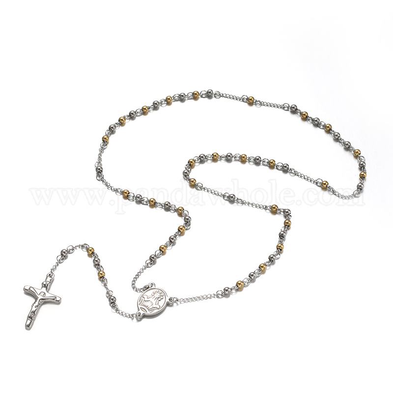 Два тона 304 из нержавеющей стали четки из бисера ожерелья, с крестом распятия и овальной кулон, на Пасху