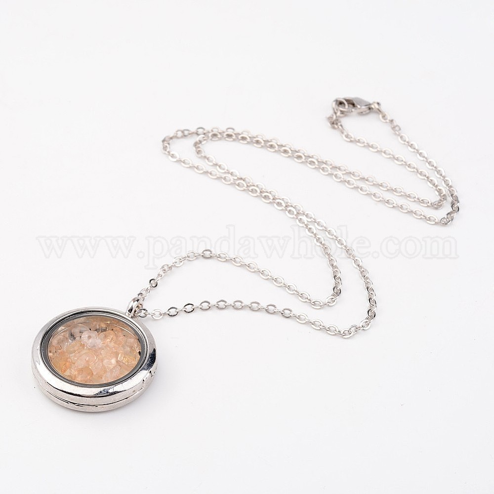 • Цитрин Натуральный цитрин сплава кулон ожерелье, плоско-круглые, с медными кабельными цепями и застежками из латуни, 21.65 дюйм