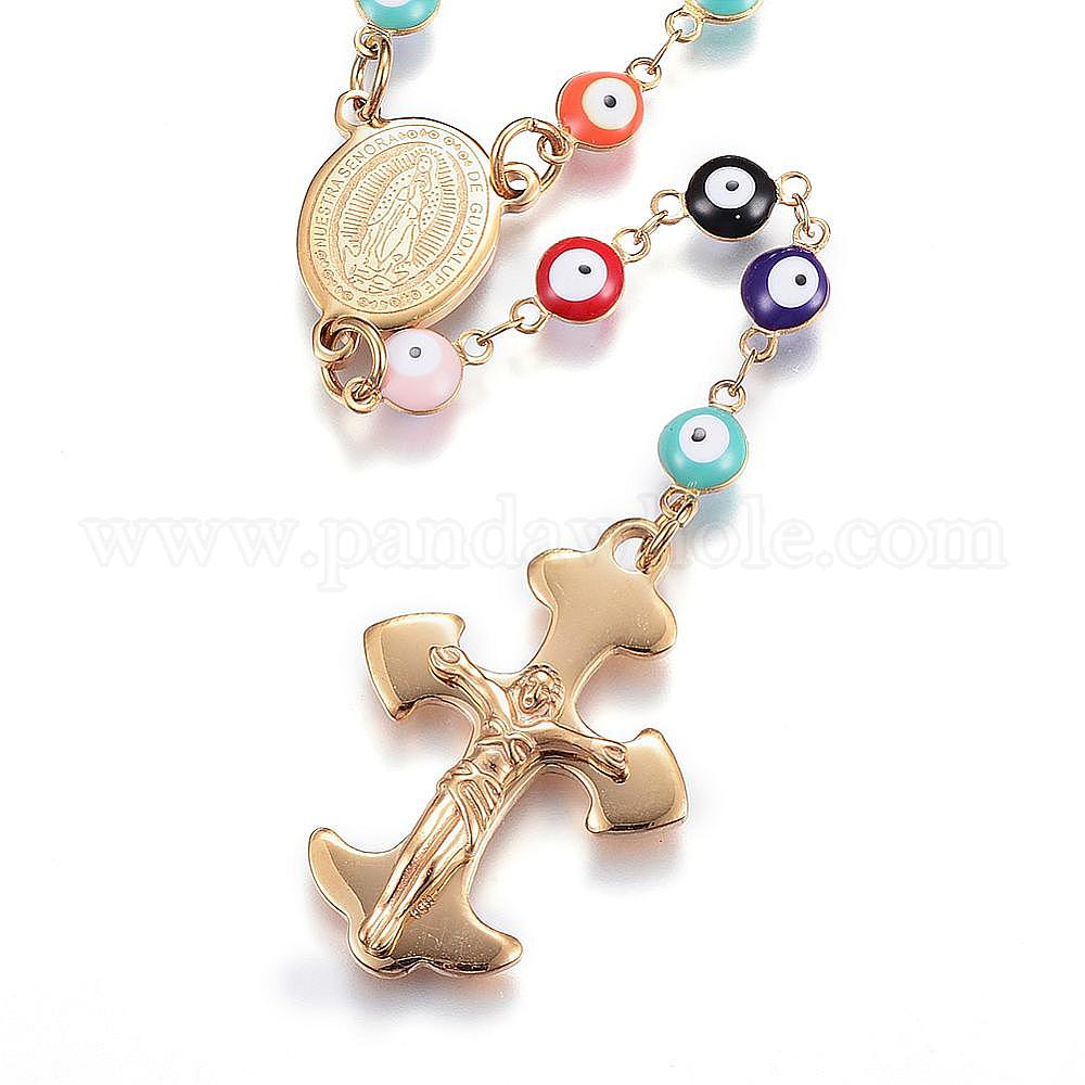 Ожерелья из розового ожерелья ручной работы, 304 из нержавеющей стали ожерелья эмали, с поперечным кулон