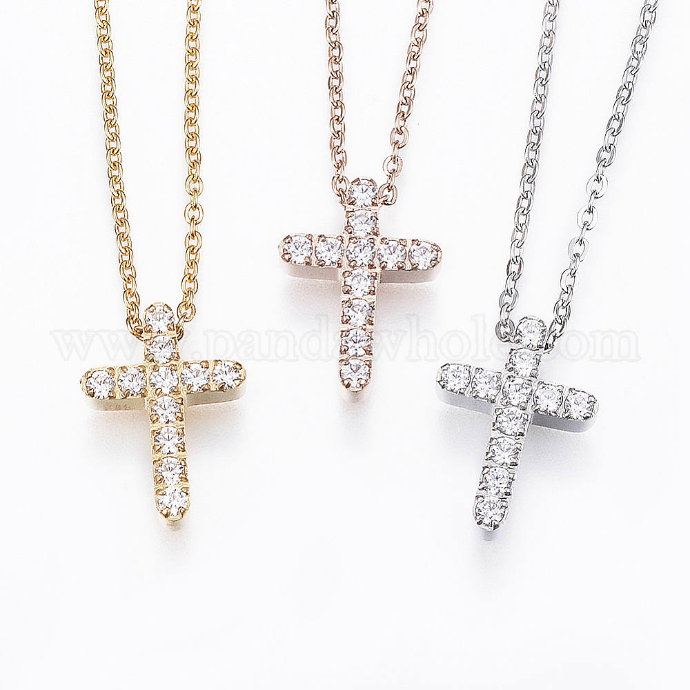 304 подвесные из нержавеющей стали ожерелья, с кубического циркония, крестик