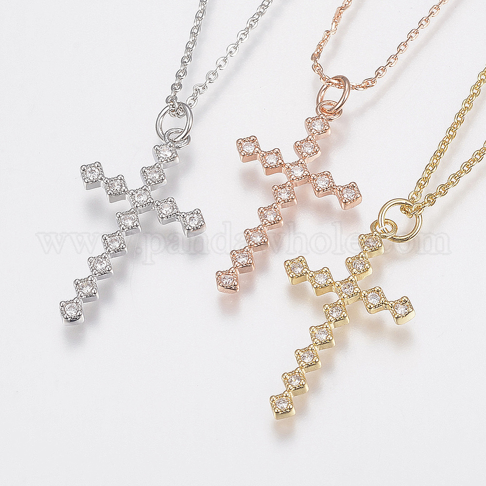 Латунные кубического циркония кулон ожерелья, застежка когтя омара, крестик