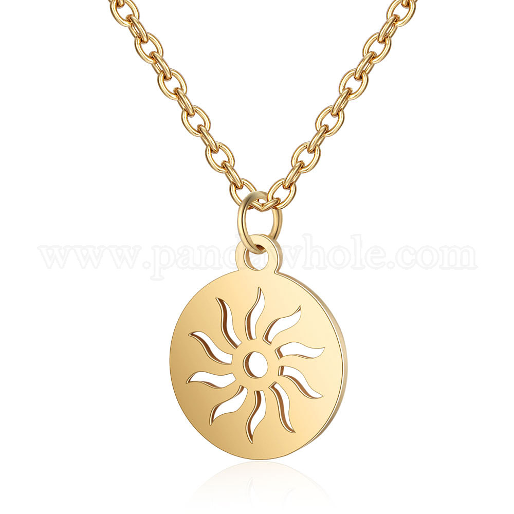 201 из нержавеющей стали ожерелья подвески, плоские круглые с солнцем