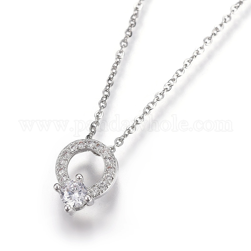 Ожерелья с подвесками из латуни с прозрачным кубическим цирконием и микропаве, с 304 кабельными цепочками из нержавеющей стали, кольцо