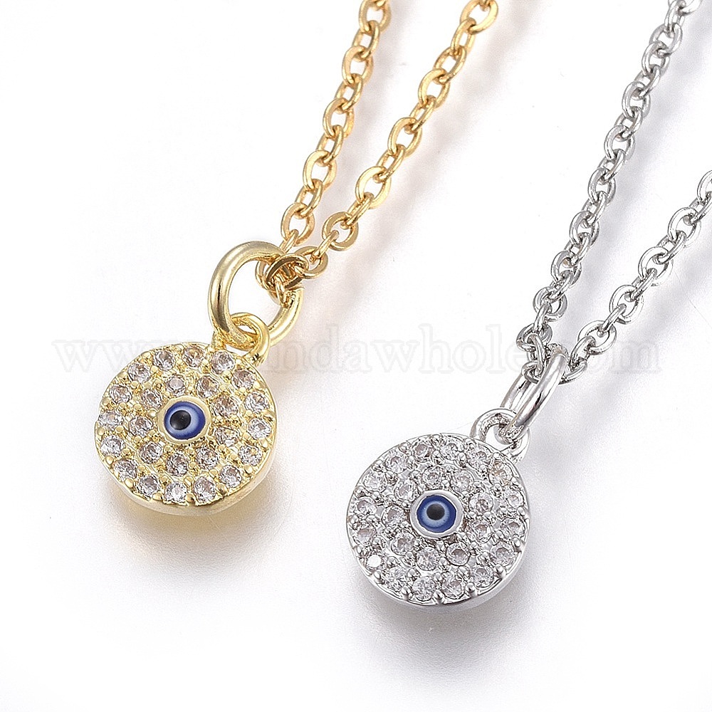 Ожерелье с кулоном из кубического циркония, с 304 цепи из нержавеющей стали, плоские круглые с глаз
