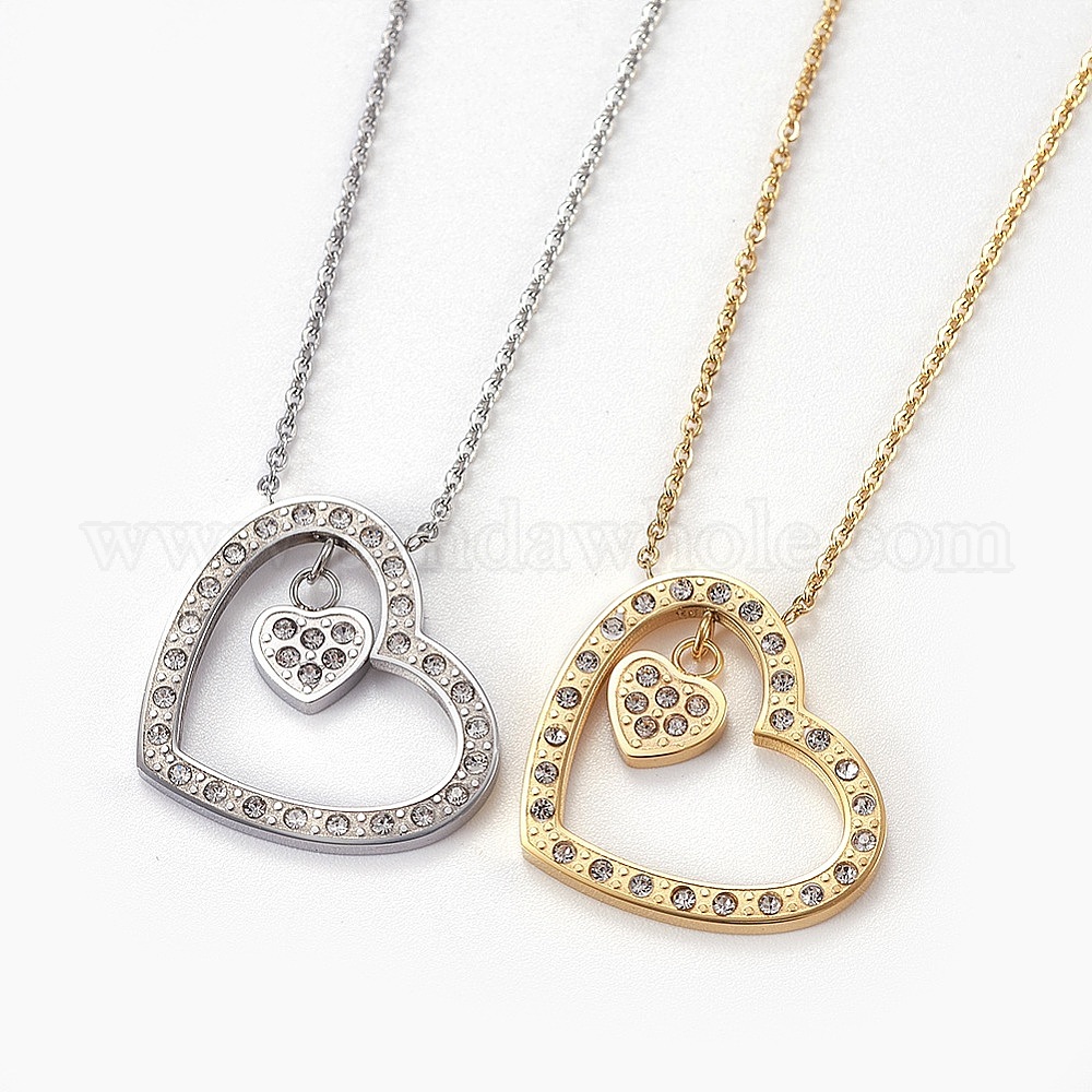 304 подвесные из нержавеющей стали ожерелья, с застежками и стразами когтя омара, сердце