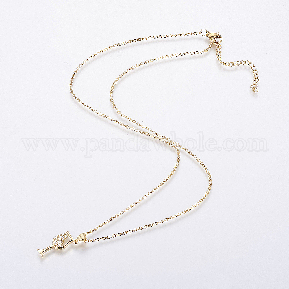 Подвеска из нержавеющей стали ожерелья, с латунными микропроволочными кубическими циркониевыми подвесками, бокал