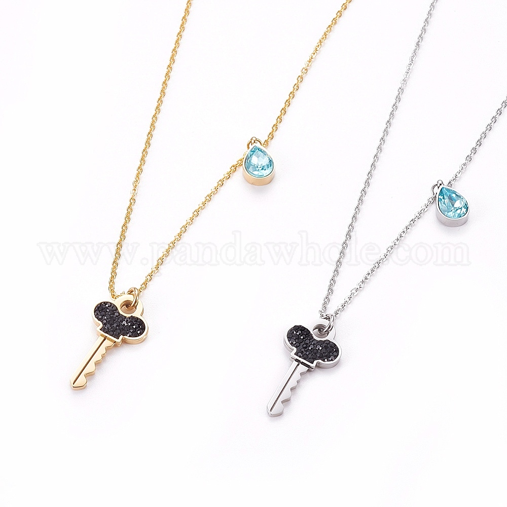 304 подвесные из нержавеющей стали ожерелья, с полимерным глинистым горным хрусталем и стеклом, ключ
