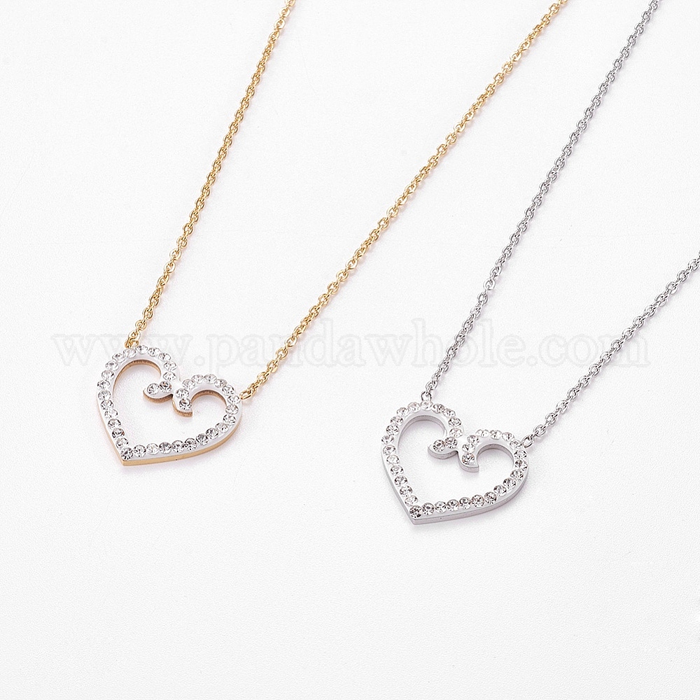 304 подвесные из нержавеющей стали ожерелья, с полимерной глиной горный хрусталь, сердце