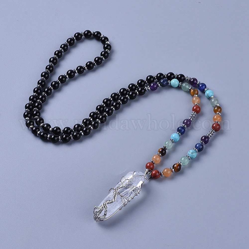 Драгоценный камень кулон ожерелье, с подвеской из кварцевого хрусталя и латунными находками