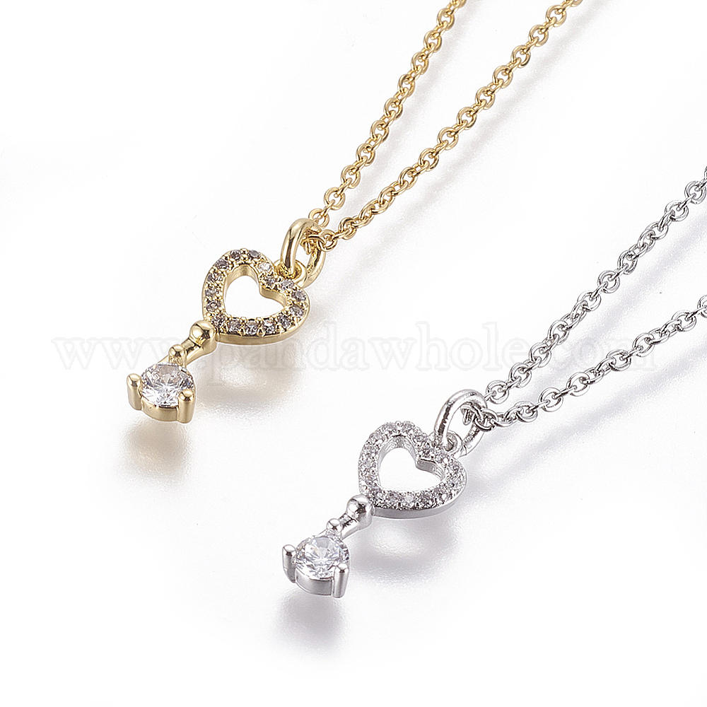 304 подвесные из нержавеющей стали ожерелья, с кубическими кубическими циркониевыми подвесками, Сердце ключевых