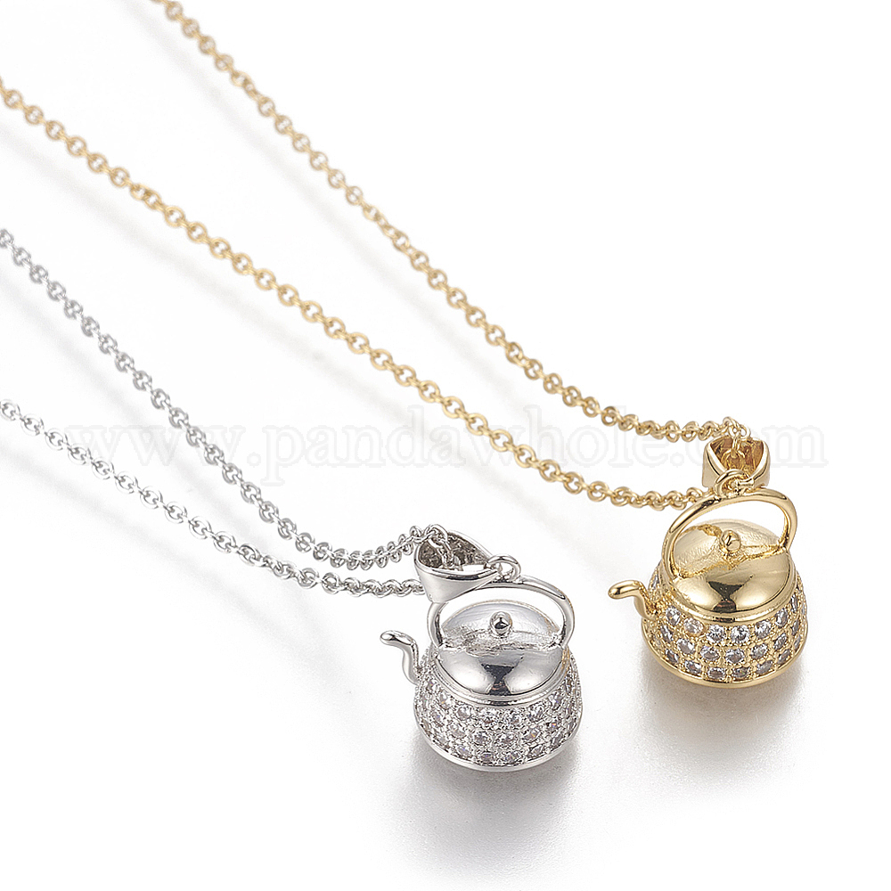 Ожерелье с кулоном из кубического циркония, с 304 кабельными цепочками из нержавеющей стали, чайник
