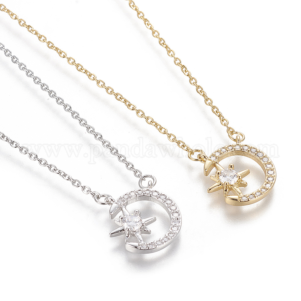 Ожерелье с кулоном из кубического циркония, с 304 кабельными цепями из нержавеющей стали и застежками омаров, Луна и звезды, прозрачные