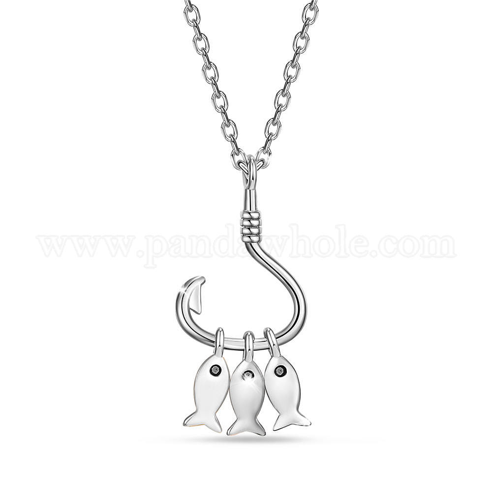 925 подвесные стерлингового серебра ожерелья, с эпоксидной смолой и кабельными цепями, рыболовный крючок с рыбой