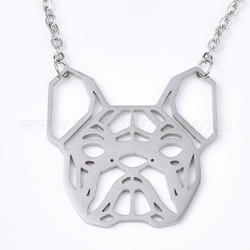 • Нержавеющая Сталь Цвет Не тускнеет 201 ожерелья из нержавеющей стали с подвеской в виде щенка, с кабельными цепями, филигранная голова бульдога, цвет нержавеющей стали, 17.3 дюйм (44 см), 2 мм, бульдог: 29x28.5x1 мм